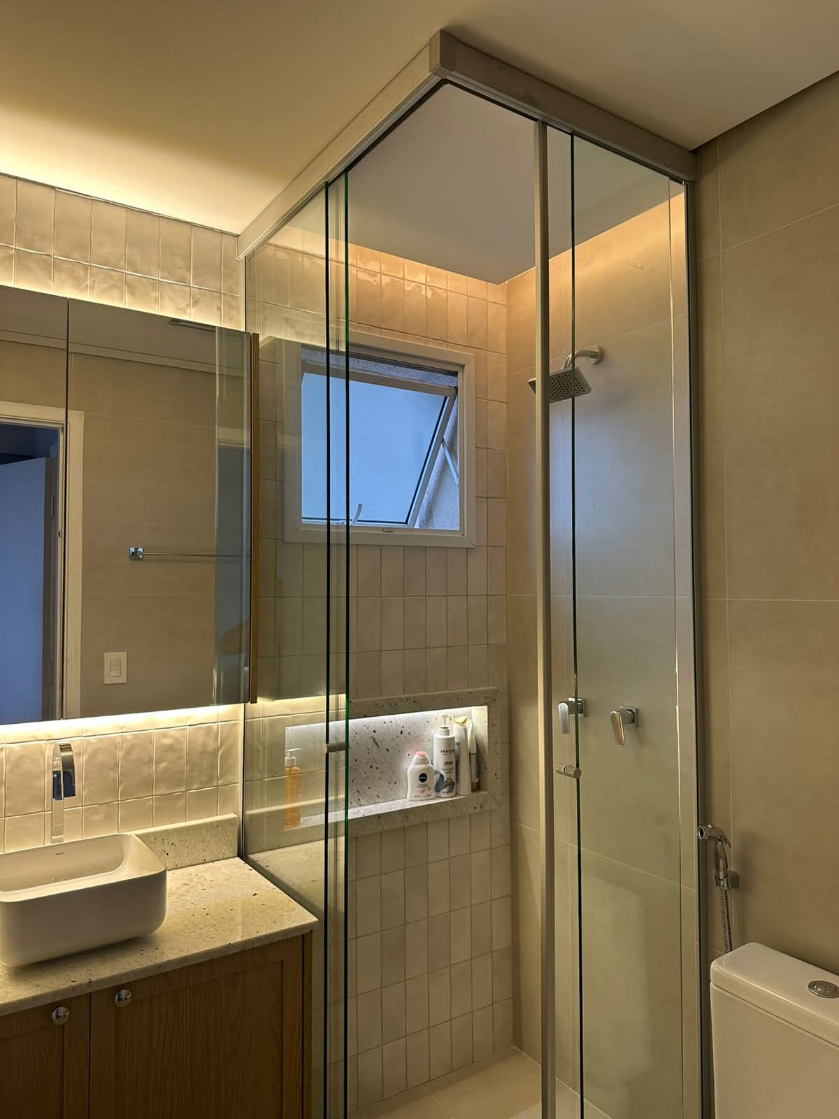 Aplicações em vidro temperado com segurança, estética e precisão. Box para banheiro (comum e até o teto) Sacadas e fechamento de varanda Guarda-corpo e corrimão Fachadas comerciais e vitrines Tampos de mesa e divisórias